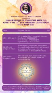 Sohrab Behram Irani, Baba’s nephew, would be sharing his early life with his Uncle, Beloved Baba, and also regale Baba and us all with Baba songs.